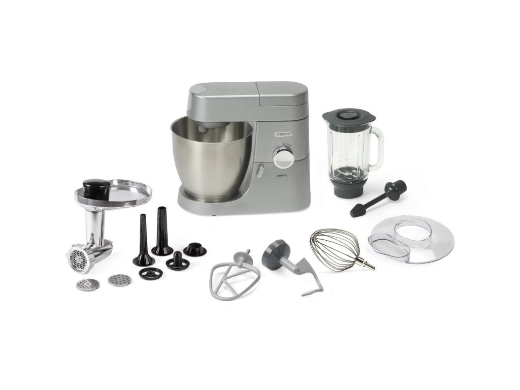 Kenwood KVL 4170.S má ve své výbavě vysoce kvalitní kovové metly - K-metlu (skvělá na lehká těsta), šlehací balónovou metlu (výborná ke šlehání bílků a krémů), spirálový hnětací hák (pro zpracování tuhého těsta, třeba na koláče) a také skleněný ThermoResist mixér a kovový mlýnek na maso. Mixér z tepluvzdorného borosilikátového skla má objem 1,6 l a je vynikající k drcení ledu či mixování horkých polévek. Jeho prvotřídní nože Blend-X zvládnou vše, od tvrdých ořechů po hladká smoothies. Masomlýnek je zase vybavený 3 mlecími disky a zajistí jemné, středně hrubé i hrubé mletí. Krom masa je skvělý i pro úpravu zeleniny. V neposlední řadě také disponuje sadou na přípravu uzenin.